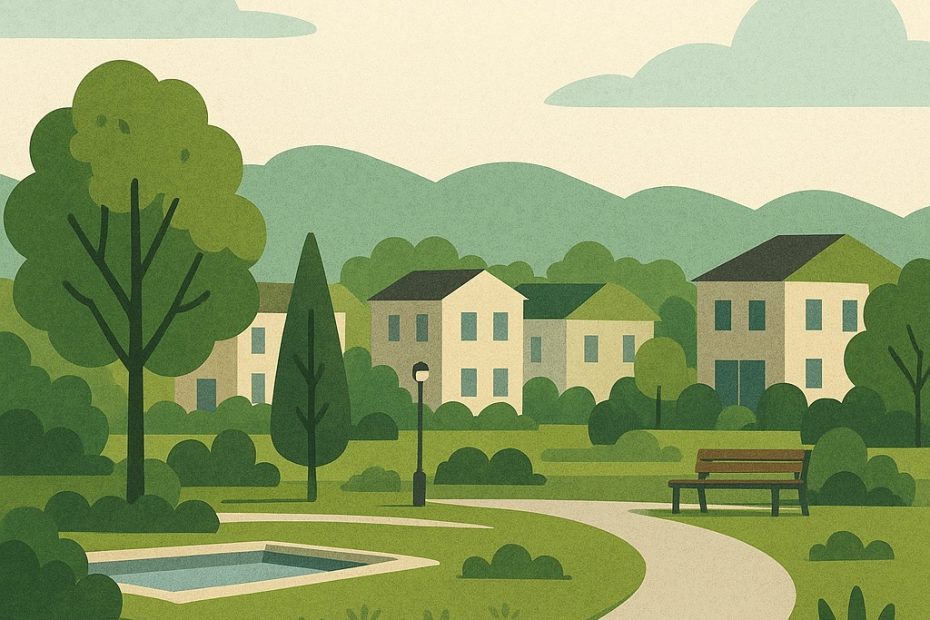 - Perumahan Modern: Taman komunitas, jalur jogging, dan danau buatan sebagai area rekreasi.